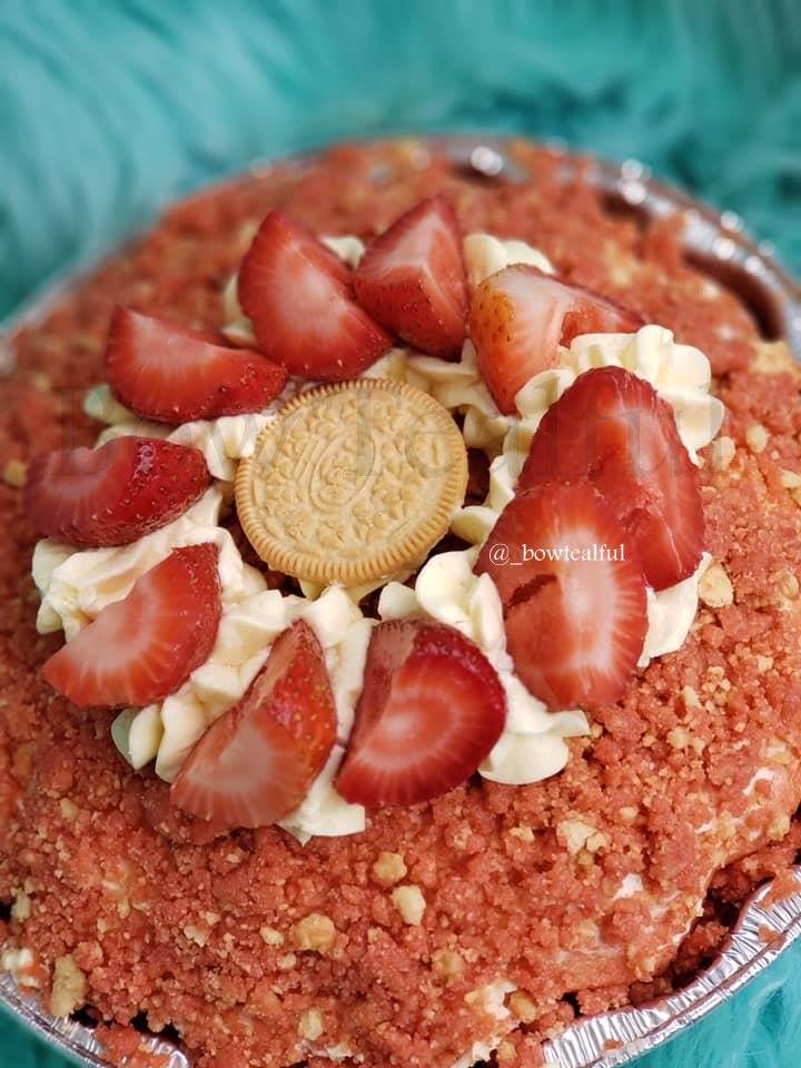 Discover a world of pure bliss with our Personal Pan, Strawberry Crunch Cake, carefully crafted to deliver an unforgettable taste experience with layers of decadent delight and a range of toppings to choose from – including whip cream, buttercream, cream cheese frosting, fresh strawberry halves, and strawberry glaze – every bite is a revelation.