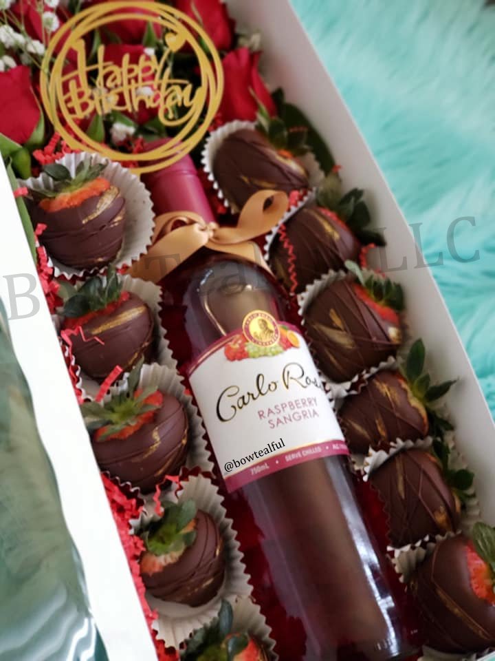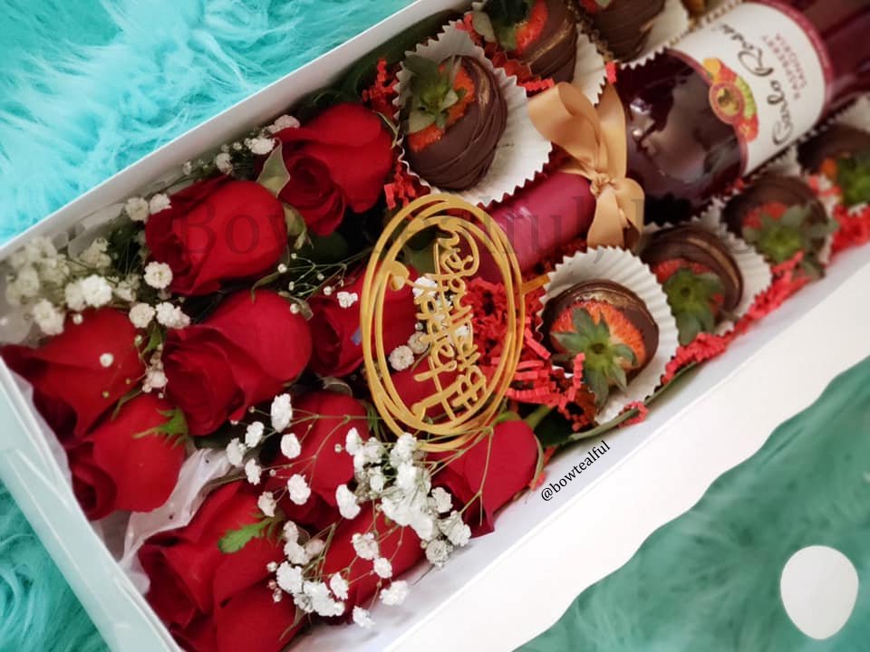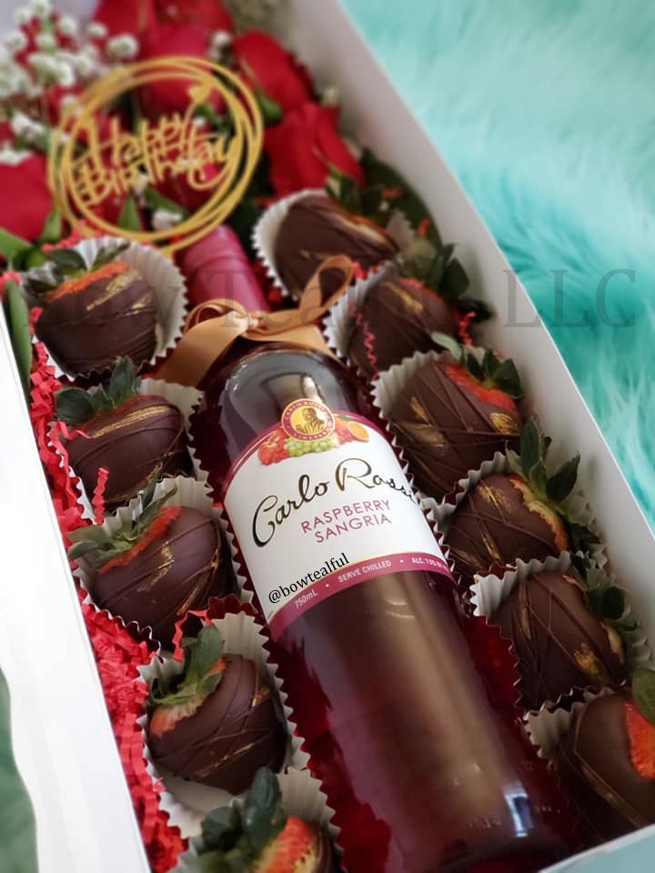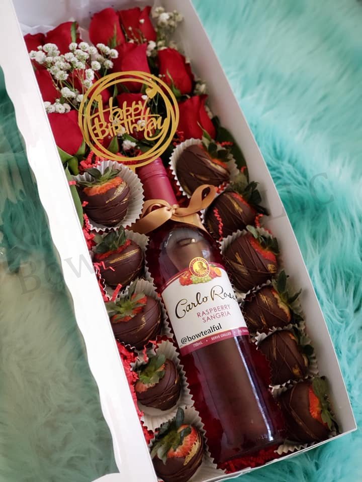 Strawberries-Wine-Roses Treat Box