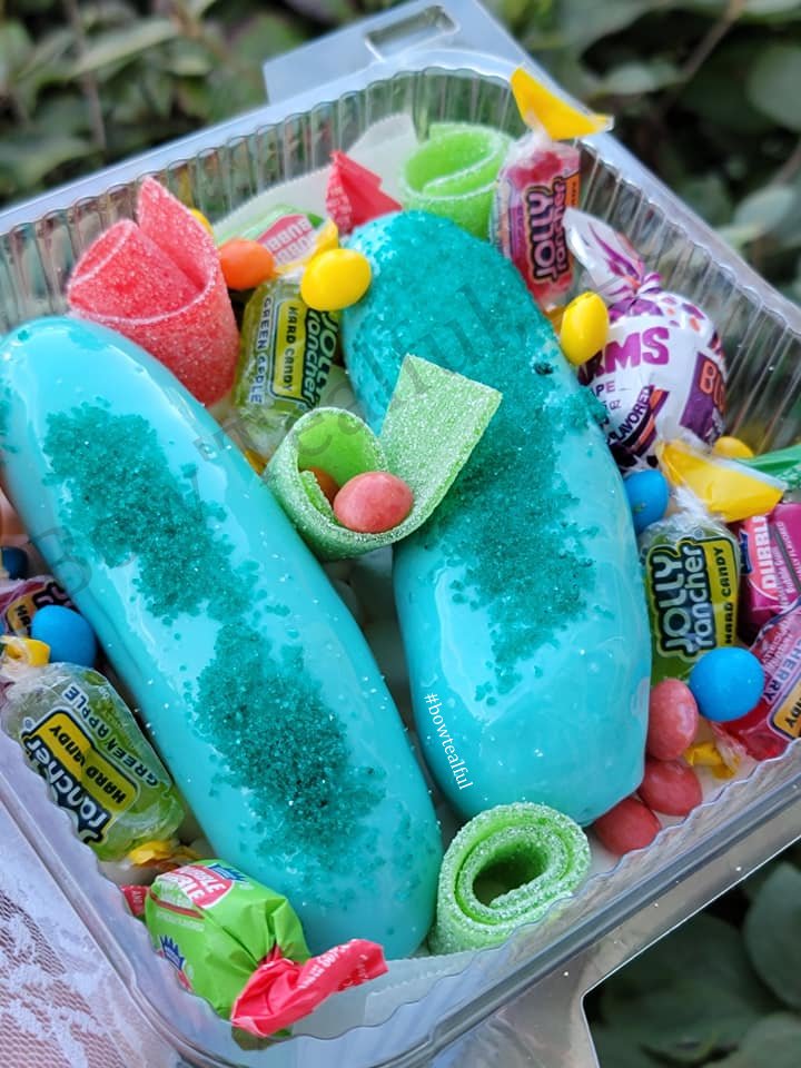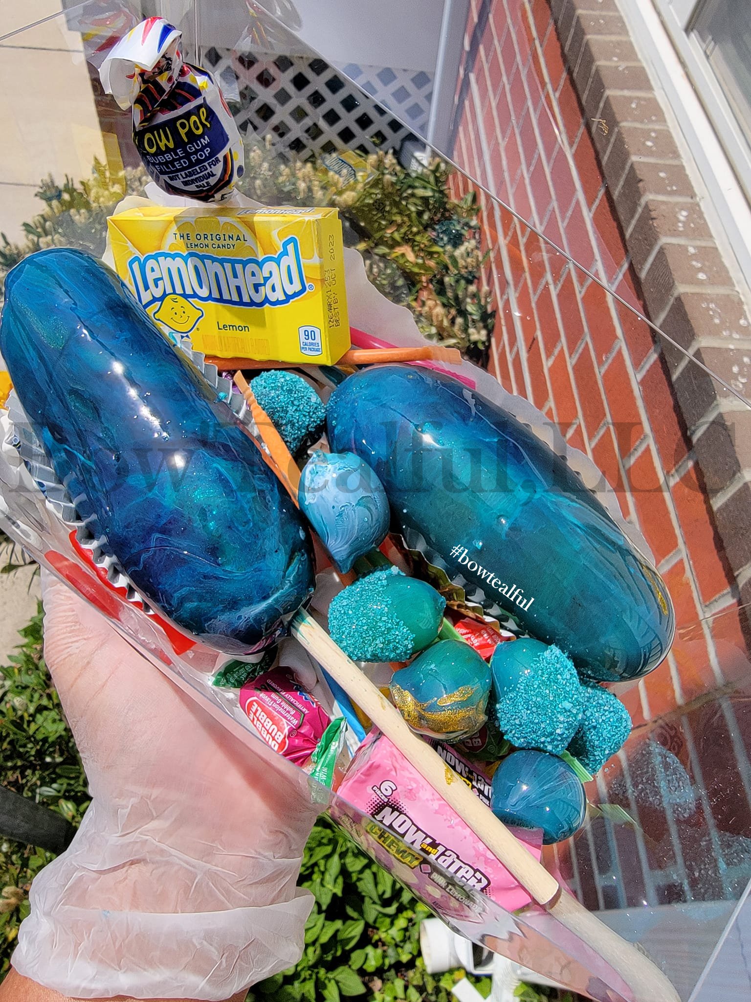 Heads up, folks! If you don't devour those scrumptious Candied Pickles the same day, they'll turn into a sad, soggy mess. Freeze them ASAP, when not eating. And don't say we didn't warn you - Bow'Tealful isn't responsible for any broken teeth. This HARD CANDY ridiculously delicious treat requires a 48-hour advance notice. Don't forget to add delivery to your cart!